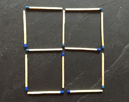 Leg 3 Streichhölzer so um, dass insgesamt 3 Quadrate entstehen: